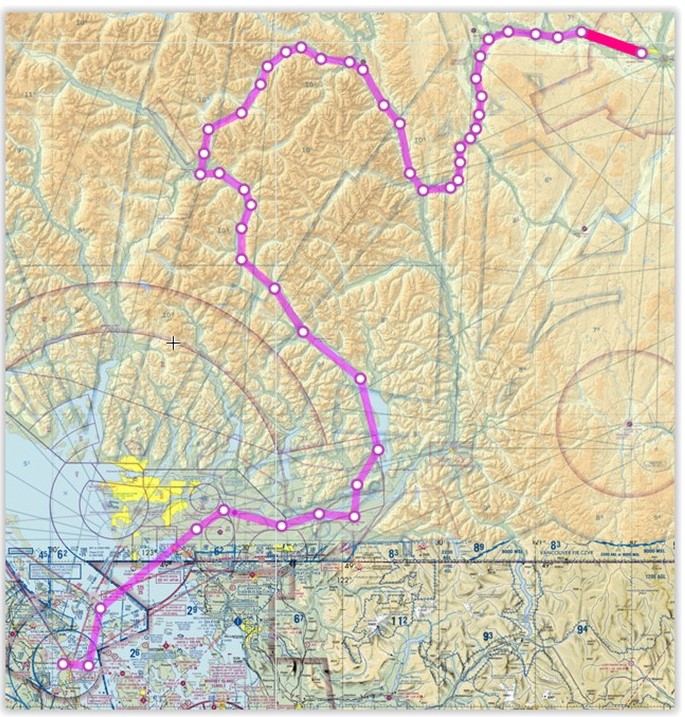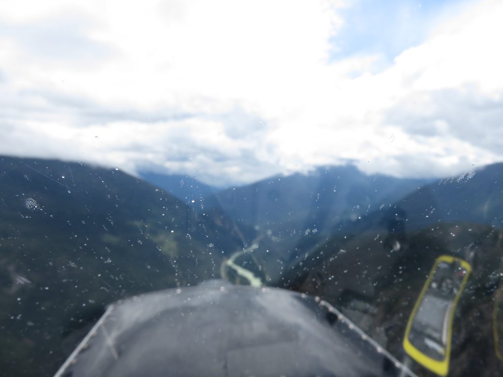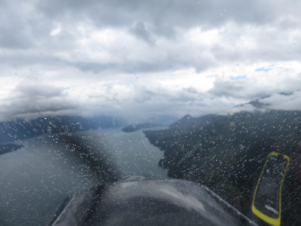 So, I took my map and headed out to see for myself.  I’m comfortable with a exploratory excursion as long as I know I have super solid backup options and with the floats, I could use an airport or a lake (but with strong winds water would be hazardous). The first leg where I left Kamloops headed west and then down south towards the mouth of the Fraser River Canyon went pretty well, it was definitely windy with off-and-on rain showers but the cloud bases were quite consistent at 2000 feet above the river and they did not seem to be looking like they were going to drop down behind me. As I got to the decision point of going down the Fraser River or heading back up North and across to the next valley to the West, it was a very simple decision. The clouds were extremely low, if not completely filling the Fraser River Valley to the South, so I turned North West. I knew I had my next stopping point airport just about 20 miles up river (Lillooet) and that leg went well (It was just very turbulent). I did get to see a rainbow below me during that leg.