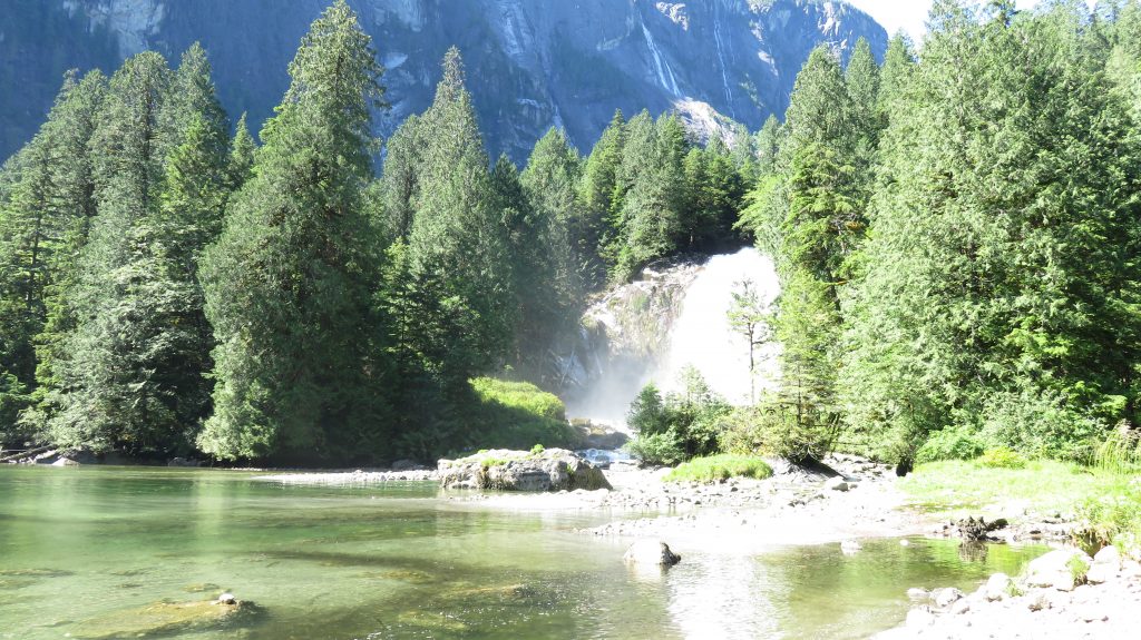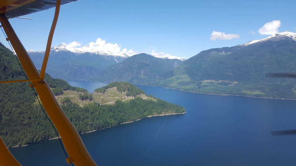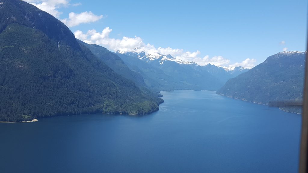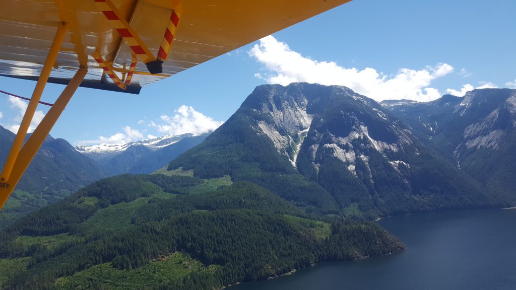We had a wonderful breakfast at the lodge and headed out to go up the Jarvis Inlet to Chatterbox Falls. It was an extremely long Inlet and it was a gorgeous sightseeing flight even along the inlet there were many waterfalls coming down the granite cliffs from the snow above.