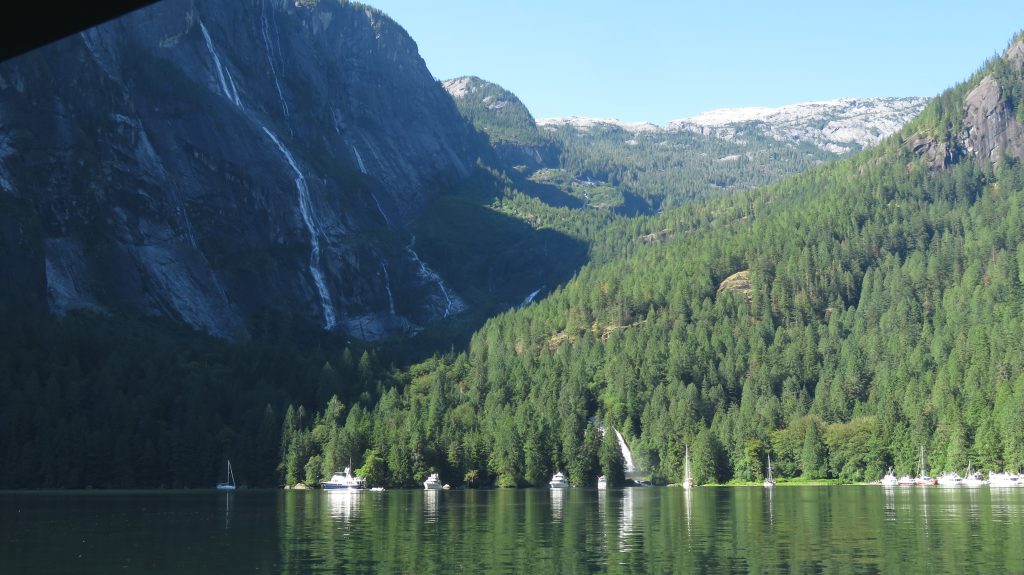 We then went the rest of the way up the inlet sightseeing more waterfalls and even some small glaciers and then headed back past the marina because it was not time yet for the current to subside and give us our opportunity to try and dock.