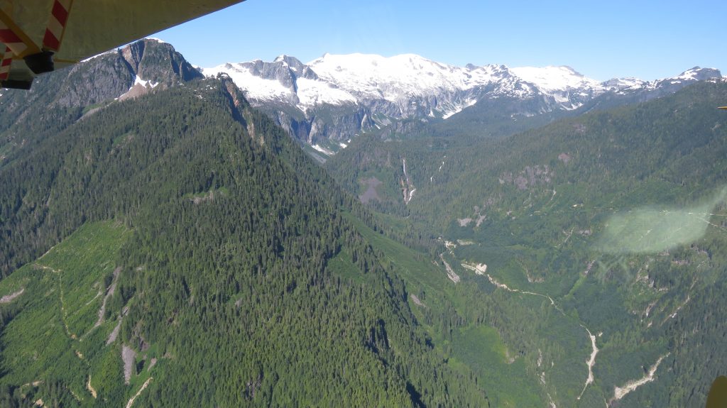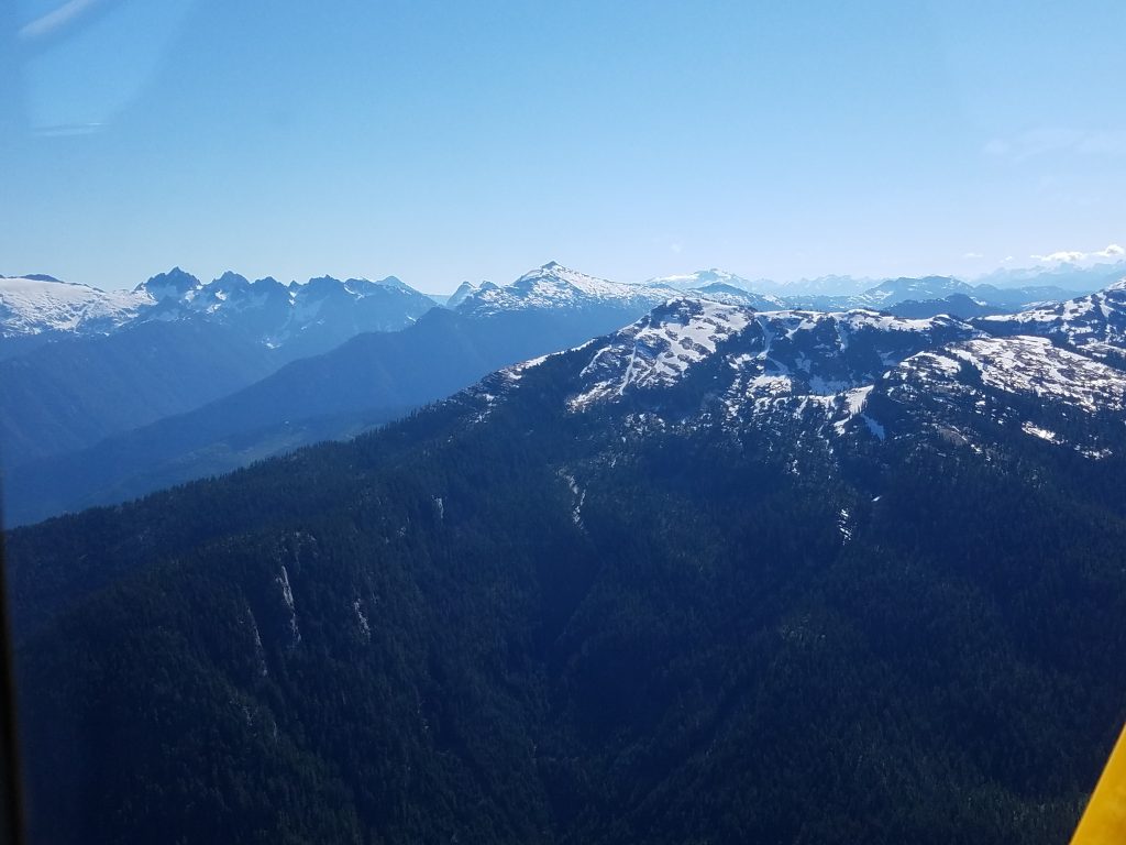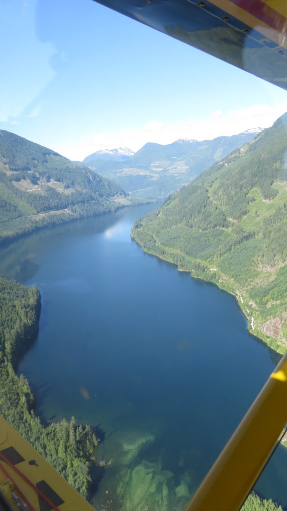 We then headed up Salmon Inlet to look at possibly landing on an alpine lake called Phantom Lake which is at about 4000 feet elevation in the mountains. The flight there was gorgeous! We climbed up to 6500 feet and it gave us a new perspective of the enormous mountain range all along that part of British Columbia.