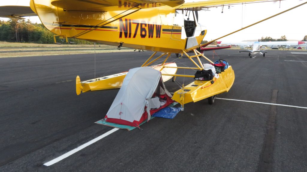 As I was packing things up, the airport attendant that goes around to all the planes and leaves a overnight fee envelope ($10) on each plane came by. As he was walking up I said “OH, I just got here”. He looked a little startled and exclaimed, “I saw you yesterday, and you have a tent”! He then saw my smile and we both got a big laugh.