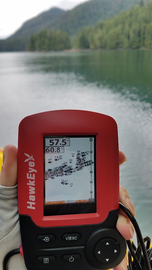We landed up one of the few fjord inlets that was very secluded and did some fishing. It was really fun to see how much Julie enjoyed it. The fish finder showed all kinds of schools of fish beneath us.