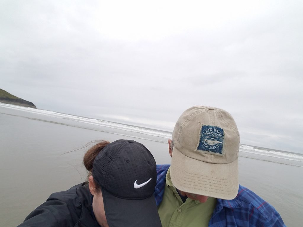 It is a really neat beach because it is so flat that the tide goes very very far out. I’m including this next picture because it is so funny that as we were holding the camera for a selfie and a small wave hit our feet and we both looked down at our wet feet just as the shutter clicked.