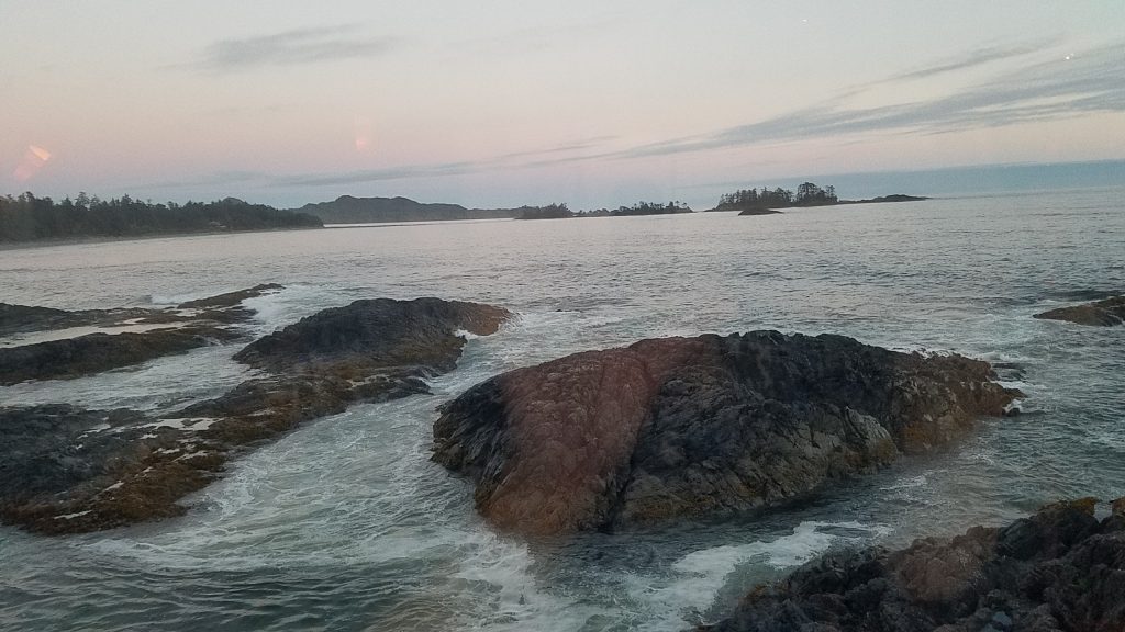We did not get a picture of him, but the chef was out on the rocks picking seaweed for dinner while we had our brunch. We took a walk on that beach and then went down to Long Beach. I’m not sure how long it is but it is incredibly long and filled with surfers (actually Tofino is a very big surfing town, it seems like all the locals have a surfboard and 90% of the tourists are there for surfing).