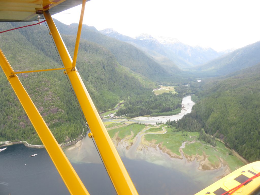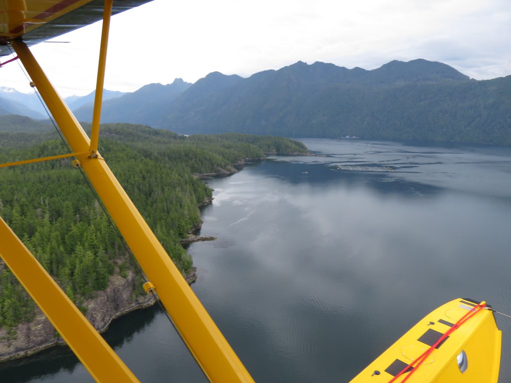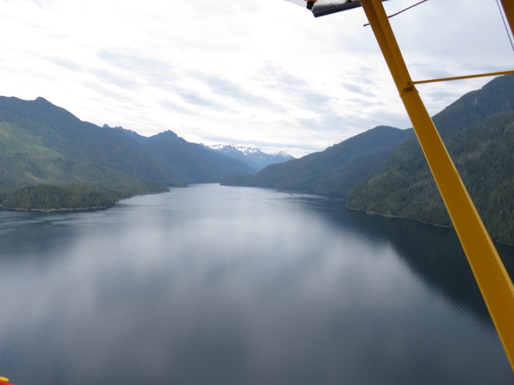 It was really fun to see all the different cabins on the islands and along some of the inlets even though 90% of it is protected reserve and quite pristine. The salmon farming operations were interesting to see from the air but we had also heard from Darren that they are definitely a big environmental problem for the Marine ecosystem.